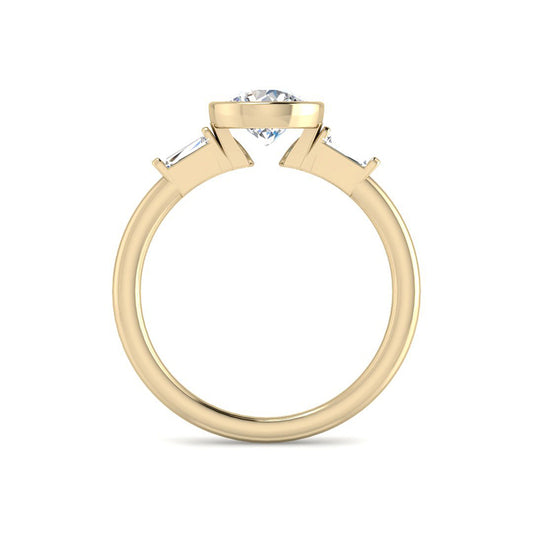 Bezel Set Round Solitaire w. Baguettes (Yellow Gold)