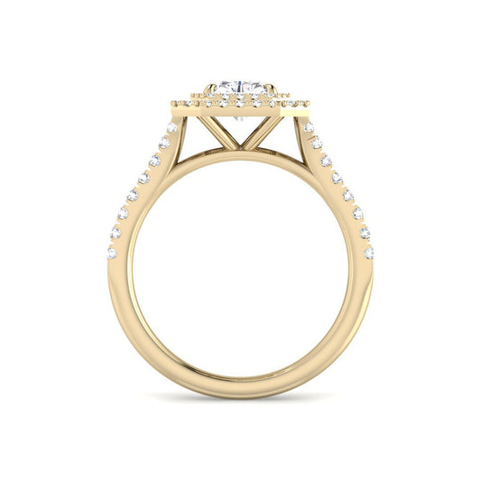 Emerald Cut Halo w. Plain Band (Yellow Gold)
