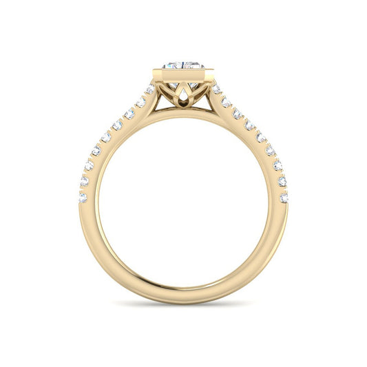 Emerald Cut Bezel w. Split Shank Pavé Band (Yellow Gold)