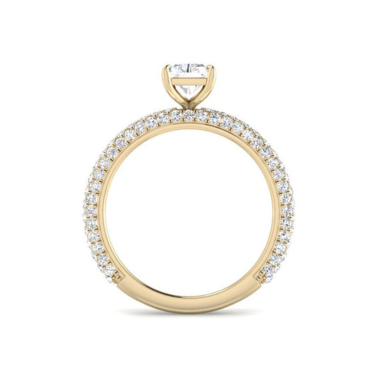 Emerald Cut w. Triple-Row Pavé Band (Yellow Gold)