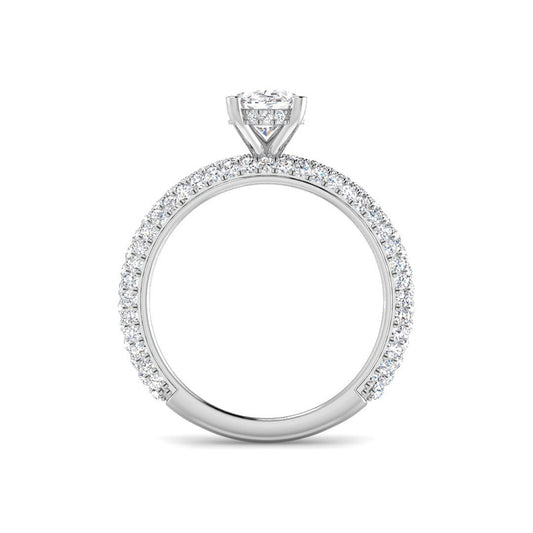 Oval Solitaire w. Pavé Diamond Band (White Gold)