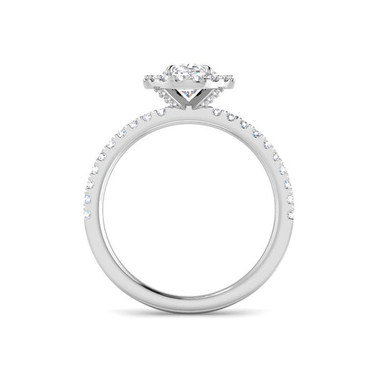 Oval Solitaire w. Diamond Band and Hidden Halo (White Gold)