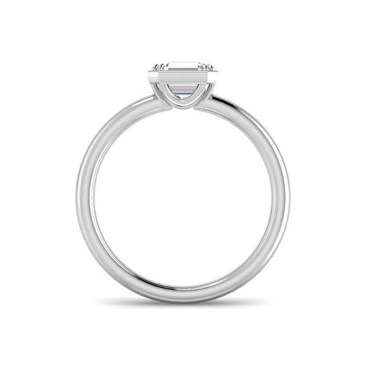 Asscher Solitaire Chubby Bezel Low Setting (White Gold)